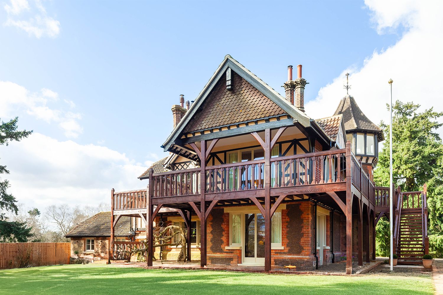 Available exclusively through Oliver’s Travels, The Folly is a turreted retreat with a wrap-around Douglas fir balcony, once used by royal ladies for afternoon tea. Thoughtfully restored by the expert team at Sandringham, this elegant home blends heritage features, royal artefacts, and refined comfort.