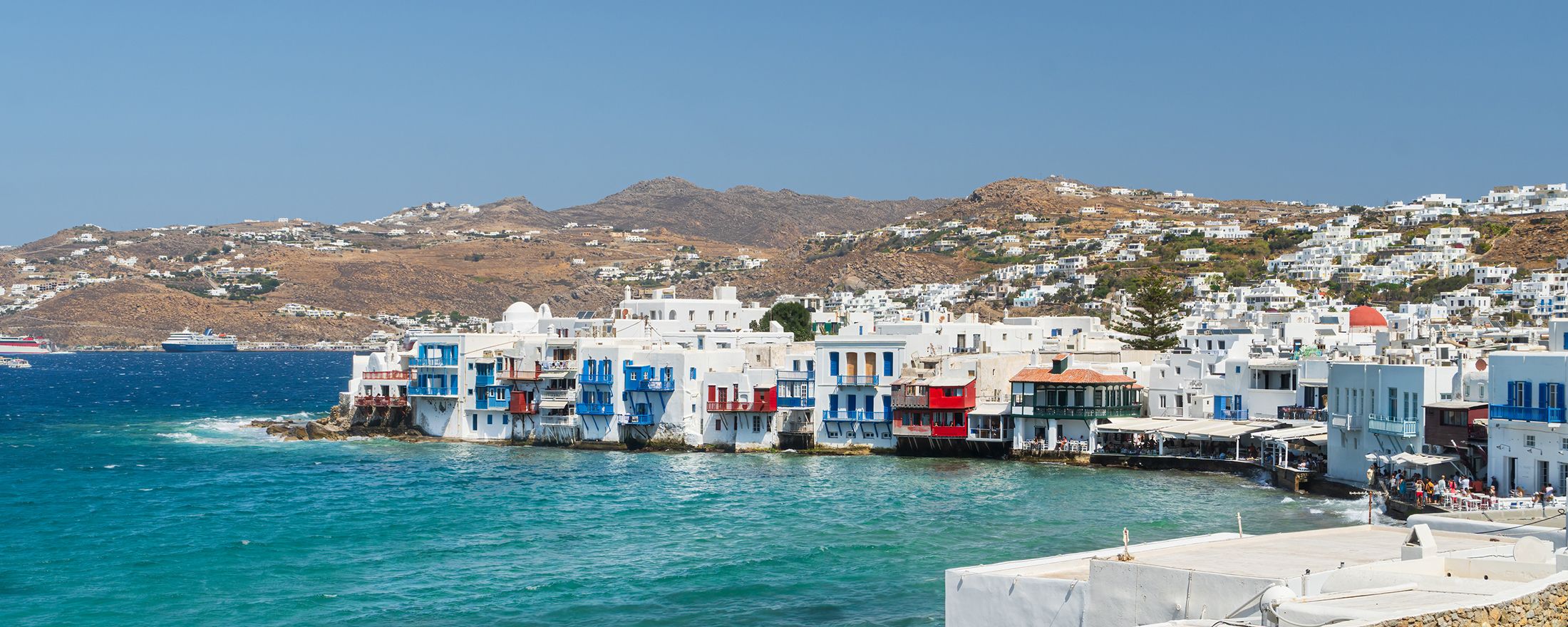 The inland village of Ano Mera is the centrepiece of Mykonos, dotted with authentic bakeries, tavernas, and cafés, with a vibrant town square where you can immerse yourself in traditional Greek culture and enjoy serene sea views in the distance.