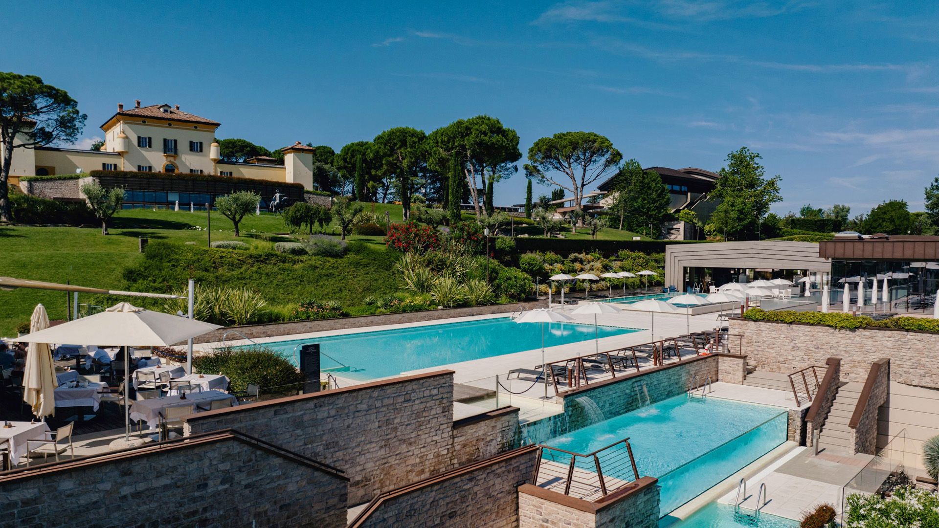 Surrounding this historic residence is a modern stone-built village, designed in harmony with the natural landscape. Spanning 30 hectares, the estate unfolds into sweeping gardens, tranquil parks, springs, and panoramic vistas. Beyond this, the resort’s farm stretches across 700 hectares, cultivating fresh, ground-to-table ingredients that take center stage in its culinary offerings.